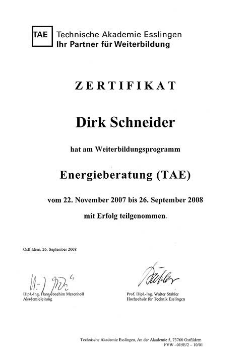 Dirk Schneider, Dipl.-Ing. und zertifizierter Energieberater (TAE)