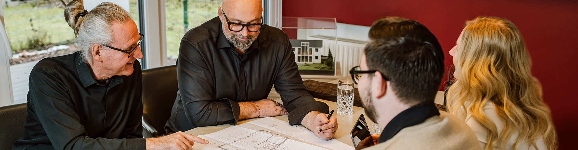 Maßgeschneidert nach Ihren Wünschen. In einem persönlichen Beratungsgespräch werden ihre Bedürfnisse und Erwartungen analysiert. Die Architektur, Grundstück, Raumaufteilung, Haustechnik und der Einsatz von regenerativen Energien und selbstverständlich Ihre persönlichen und individuellen Gestaltungswünsche stehen im Vordergrund. Wir beraten Sie ausführlich über mögliche Materialien, Baukonstruktutionen und ihre jeweiligen Eigenschaften. Wir analysieren hierbei gemeinsam mit Ihnen was Ihr persönliches Traumhaus ist.